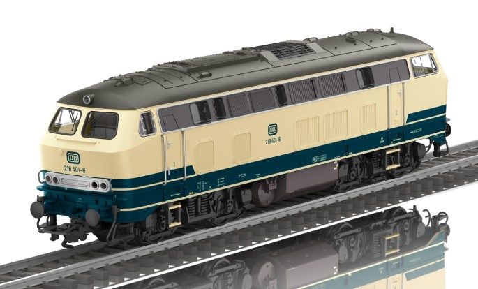 Die Diesellokomotiven der Baureihe 2018 sind bis heute im Dienst. Ob bei der DB AG oder bei vielen privaten Eisenbahnunternehmen, die 218er sind zuverlässig und fast unverwüstlich. Als H0 Neuheit kommt eine Lok in das TRIX-Programm die als "Klassiker" auch länger zu haben sein soll. Im typischen ozeanblau/elfenbein-farbenen Aussehen der 1970er Jahre repräsentiert sie gleich eine ganze Familien von typischen Lokomotiven der Bundesbahn. Das Modell wurde in den letzten Jahren grundlegend überarbeitet und besitzt nun neben der Kurzkupplungskinematik auch eine Führerstandsbeleuchtung. Die Puffer wurden auf die Höhe der Norm nach NEM gebracht und der Antrieb erfolgt von einem mittig gelagertem Motor auf alle 4 Achsen. Bei diesem Modell handelt es sich um eine 218.4 und die Dachausführung wurde dieser Variante entsprechend angepasst. Eine solche 218 mit einem Schnellzug darf auf keiner H0-Anlage fehlen. Passende Schnellzugwagen wären zum Beispiel die unten folgenden grünen Wagen der Bauart UIC-X, ab sofort steht nun als Formneuheit auch der passende Postwagen des Typs "Post mr-a" im Modell zur Verfügung.