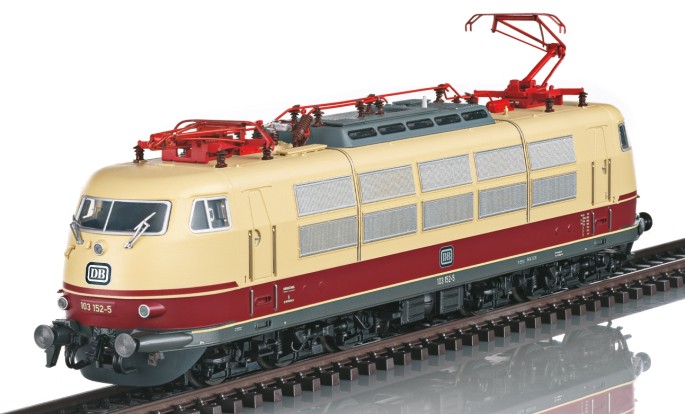 Betriebsnummer der Lok 103 152-5 im Zustand um 1979. Neben den Sound- und Spitzenlichtfunktionen sind die die Maschinenraum- und Führerstandsbeleuchtung kleine funktionale Extras an diesem Modell. Neu sind die separat angesetzten Radimitationen hinter den Drehgestellblenden. Die Lok passt perfekt zu den Schnellzugwagen des hochwertigen Intercity-Verkehrs.