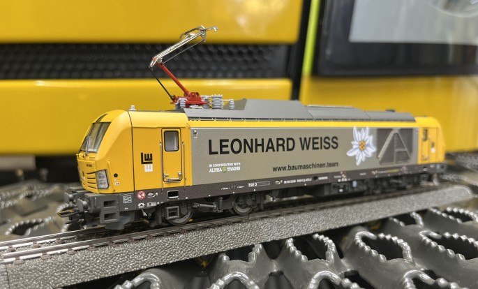 Auch das Göppinger Gleisbauuntenehmen LEONHARD WEISS hat seit September 2023 einen solchen Dual-Mode Vectron der Baureihe 248 angemietet und setzt ihn vor Bauzügen ein.